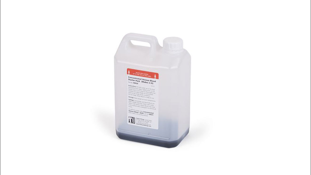 2,5 liter artificiellt blod. Fläckar inte av sig.