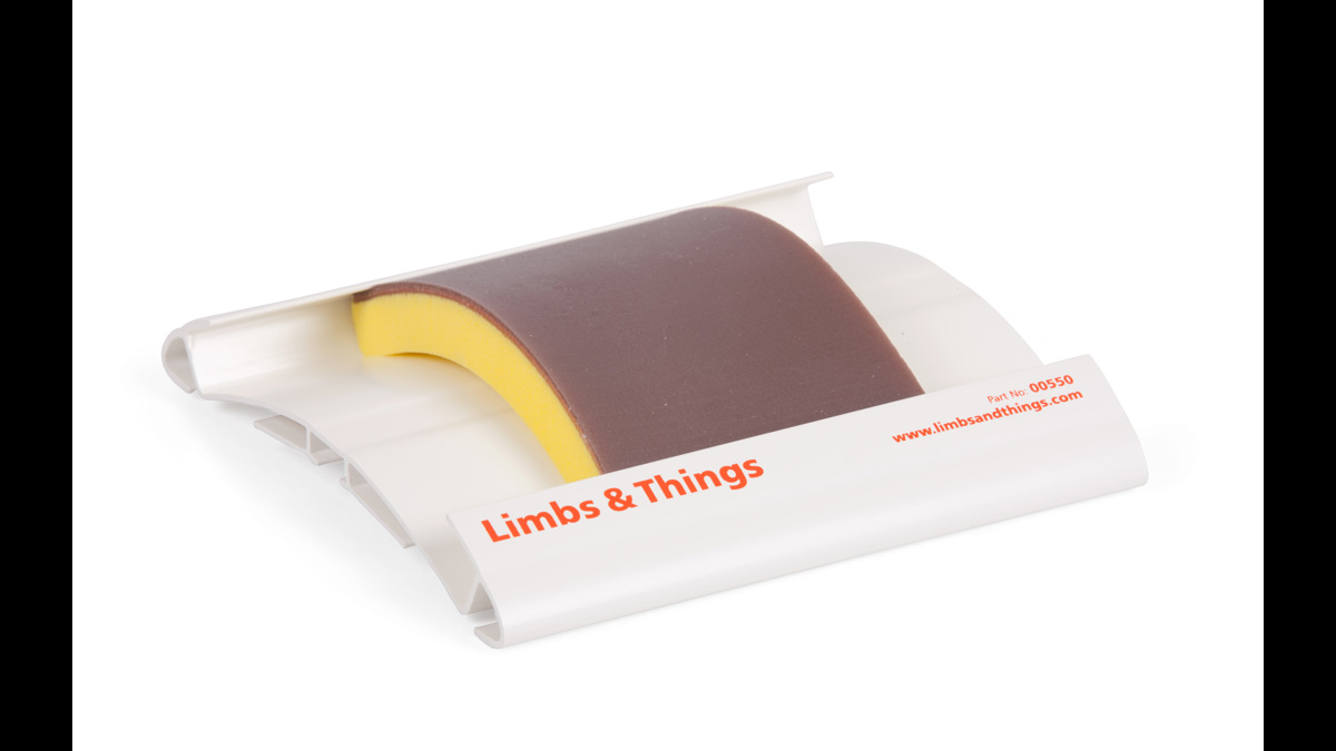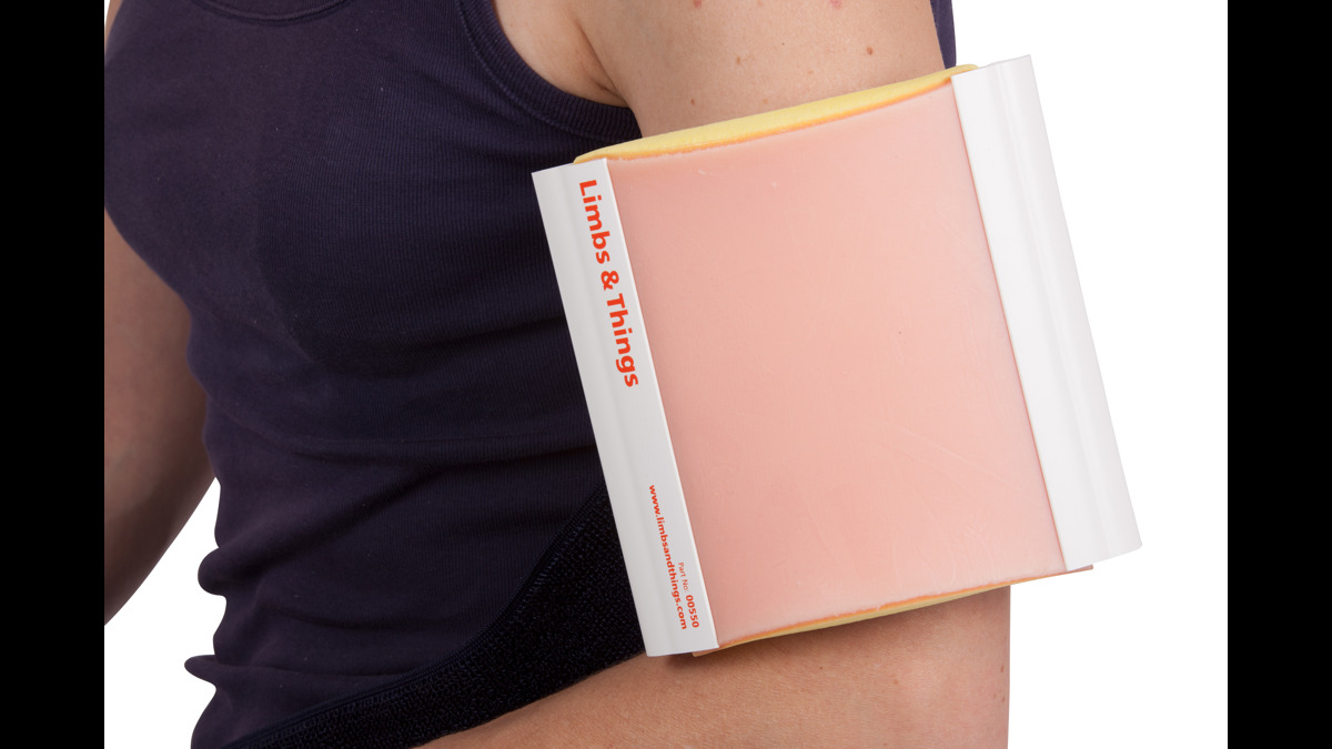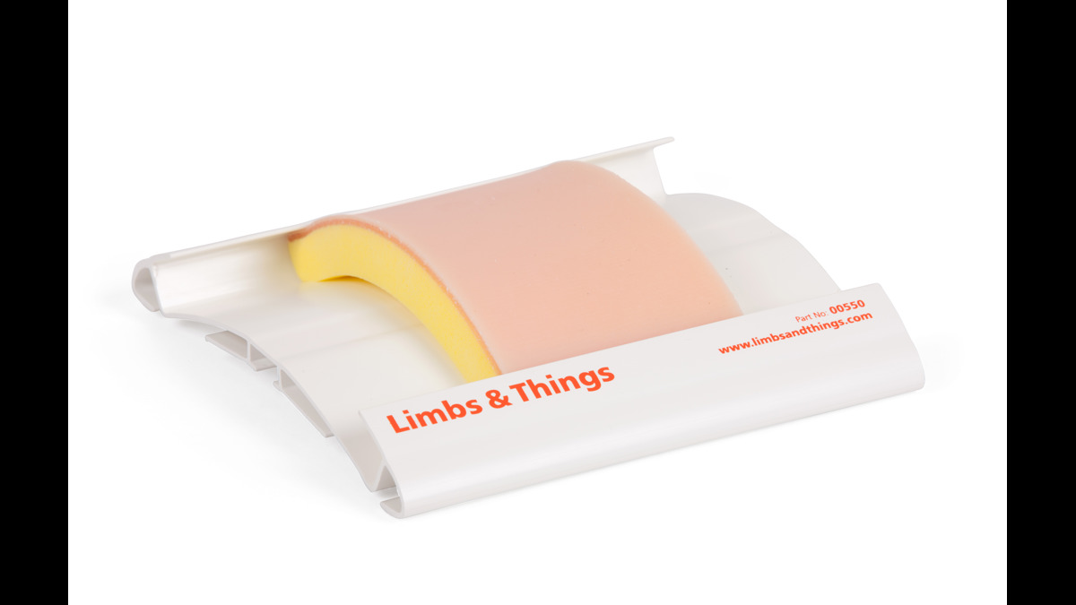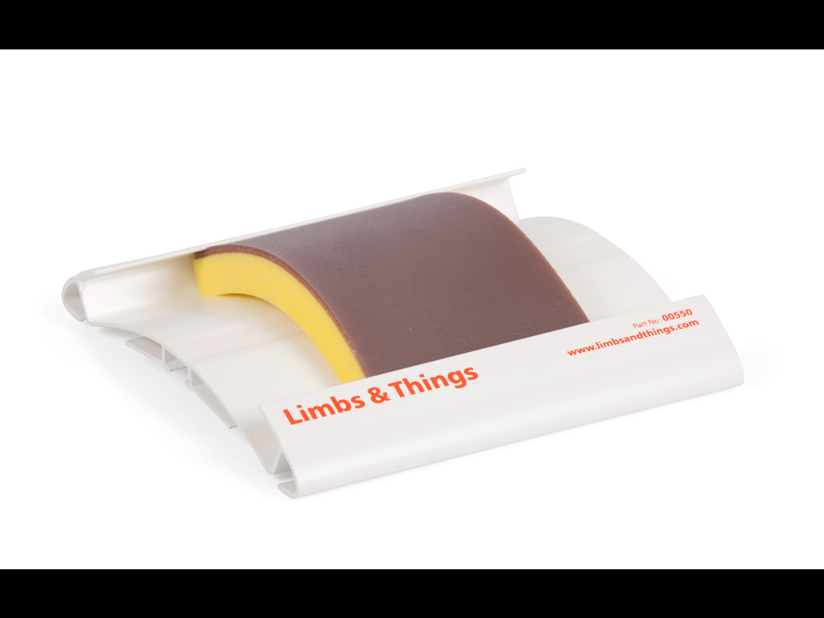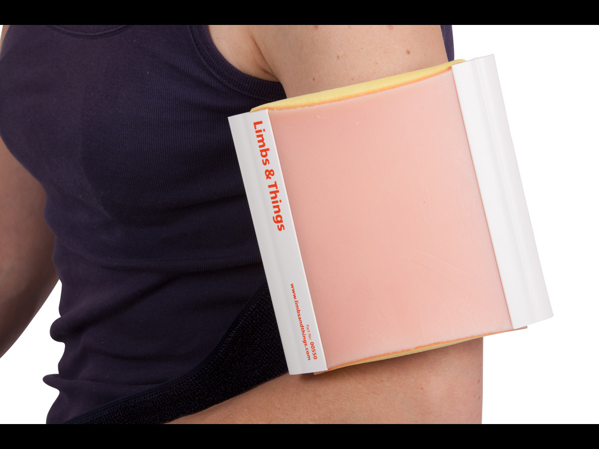 Den här hållaren fungerar tillsammans med samtliga av Limbs & Things syntetiska mjukvävnadsdynor. Kan bäras av simulerad patient när den används tillsammans med den valbara remmen (AAALT00510).
