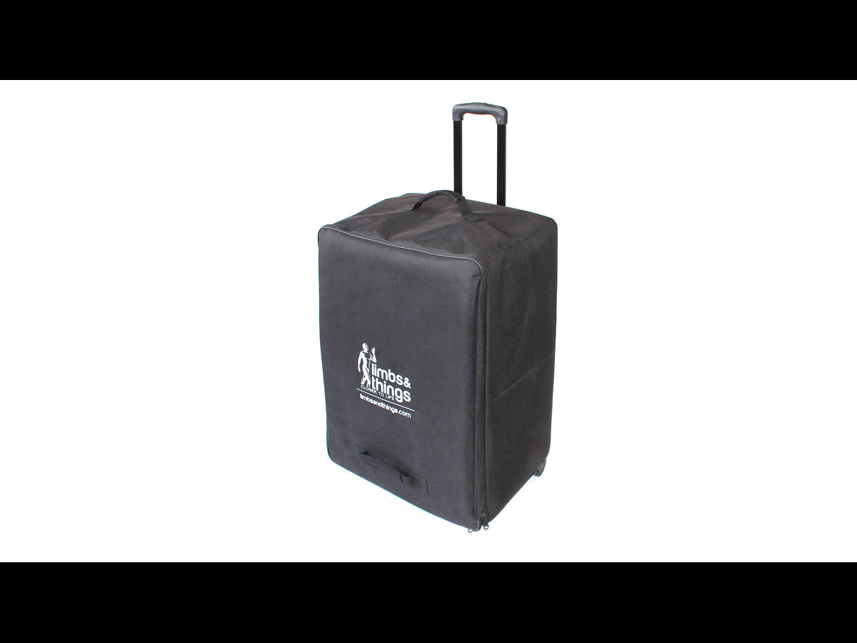 En väska för säker transport av större och tyngre modeller från Limbs & Things. Väskan har hjul och ett handtag med justerbar höjd samt ytterligare tre bärhandtag. Insidan är vadderad för att skydda modellen.