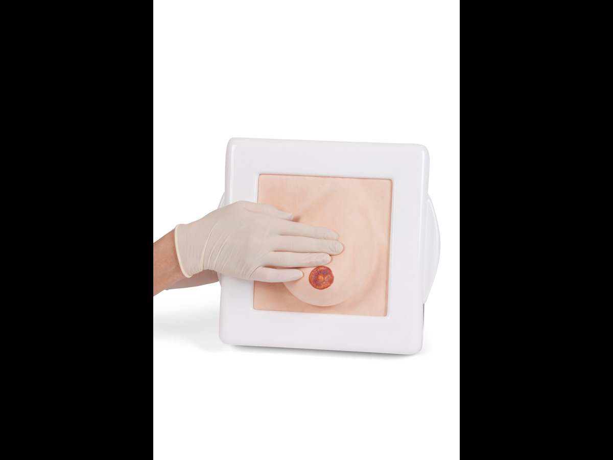 This particular product for breast examination only represents carcinomas and fibroadenomas in a fixed location. If you would like a more advanced product that allows for the randomisation of location along with variations in size and shape of pathologies we offer the Breast Examination Trainer in basic to advanced models.