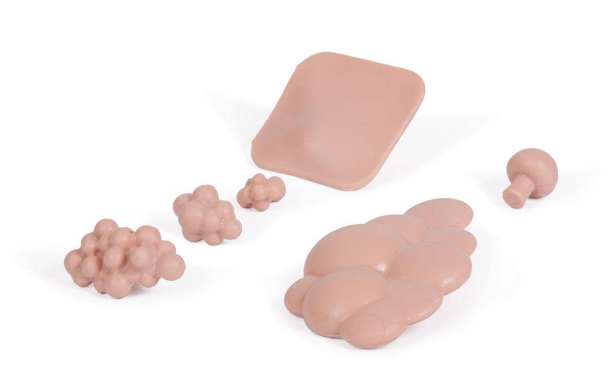Innehåller 6 utbytbara patologier som kan positioneras på en mängd olika ställen. Ger sjukvårdspersonal verktygen för att identifiera olika komplikationer och patologier såsom karcinom, cystor, fibrocystisk bröstsjukdom samt fibroadenom.
