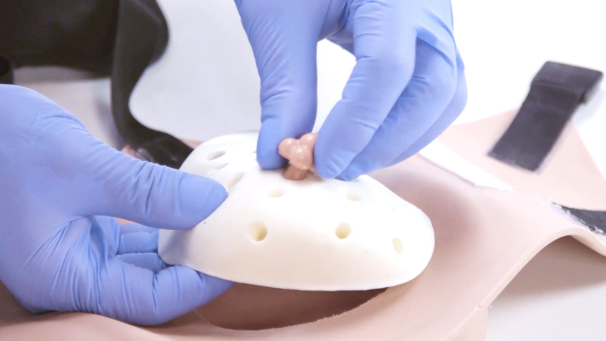 - Wearable breast component can be used with a simulated patient, strap fastenings can be adjusted to the wearer