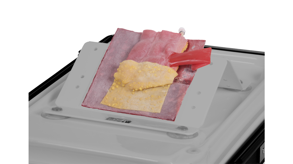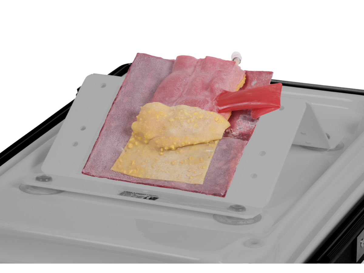 Kärlen inkluderar ett lurelås till vilket blodgivningssetet (AAALT60651) kan kopplas för att skapa ett vätskeflöde för appendikulära artären. Använd Artificiellt blod - Arteriell (250ml), produktnr. AAALT60653. Lämplig för utbildningskrav; modellen är designad för snabb anslutning till och borttagning från Fatshållningsset mjukvävnad.