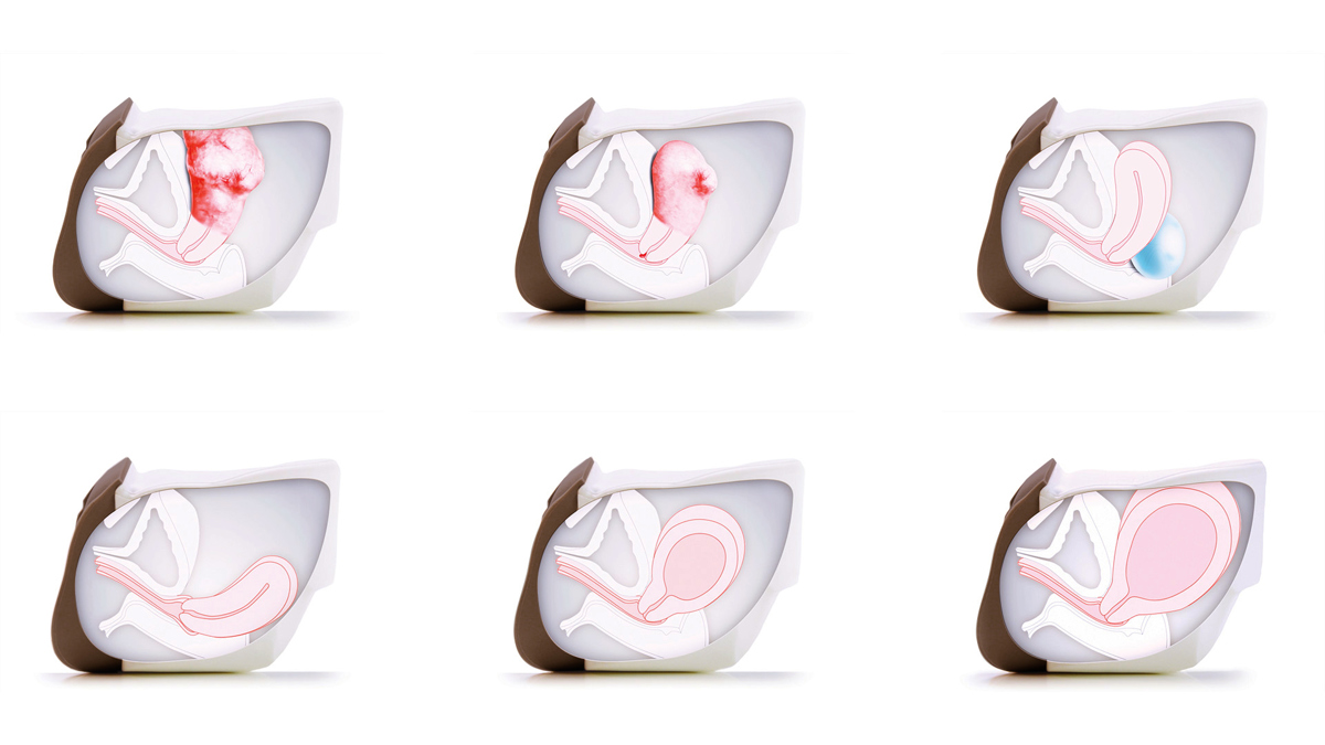 En anatomiskt korrekt och taktil representation av det kvinnliga bäckenet, för praktisk undersökning och diagnos av sjukdomar och missbildningar.