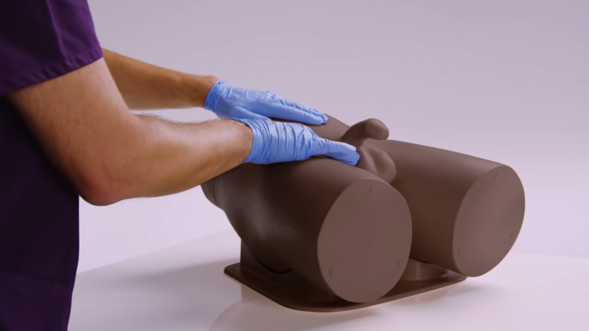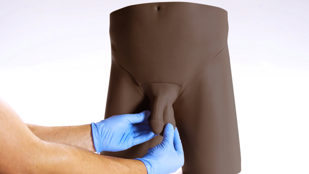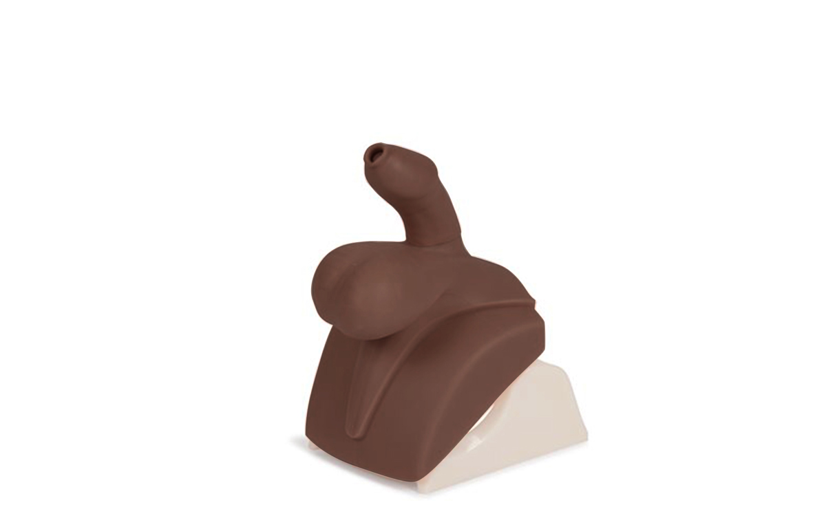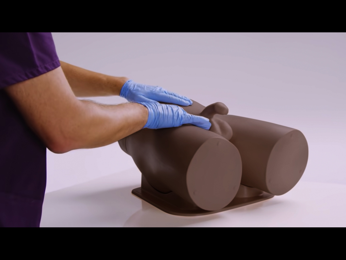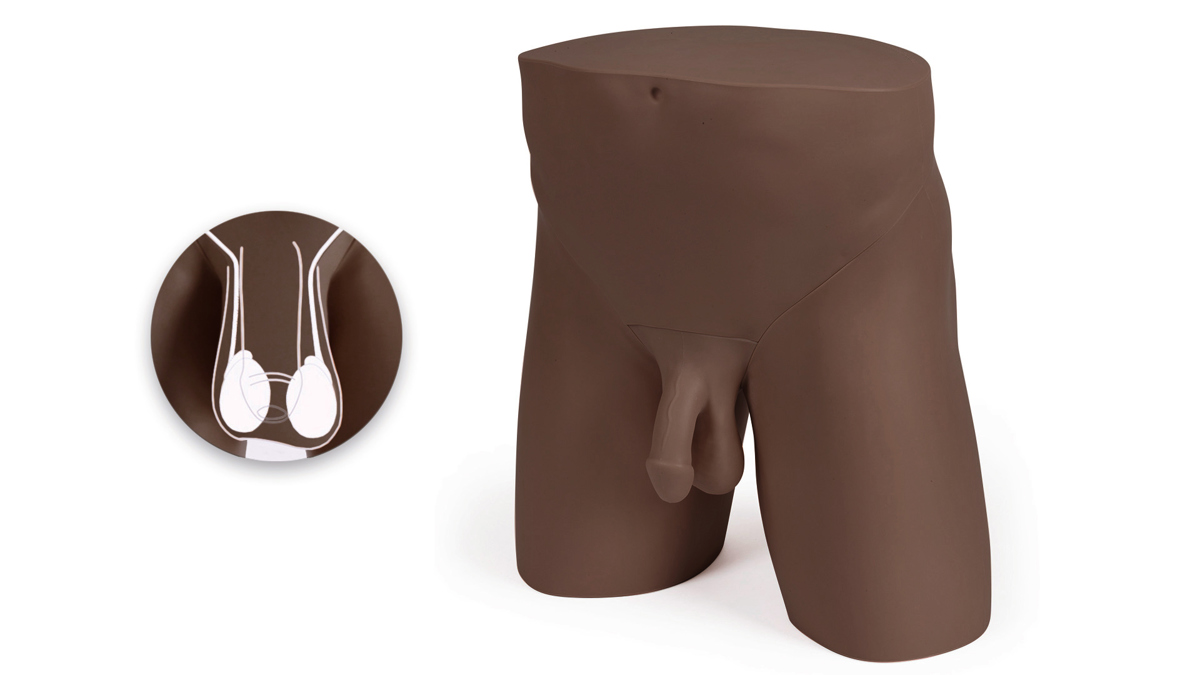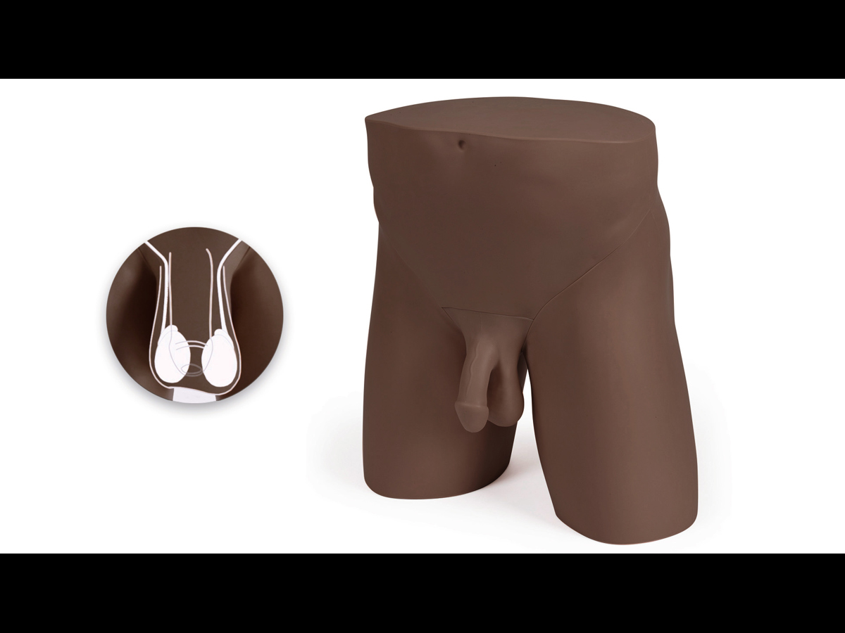 - Anatomically accurate male simulator that allows for realistic practice of the male pelvic exam