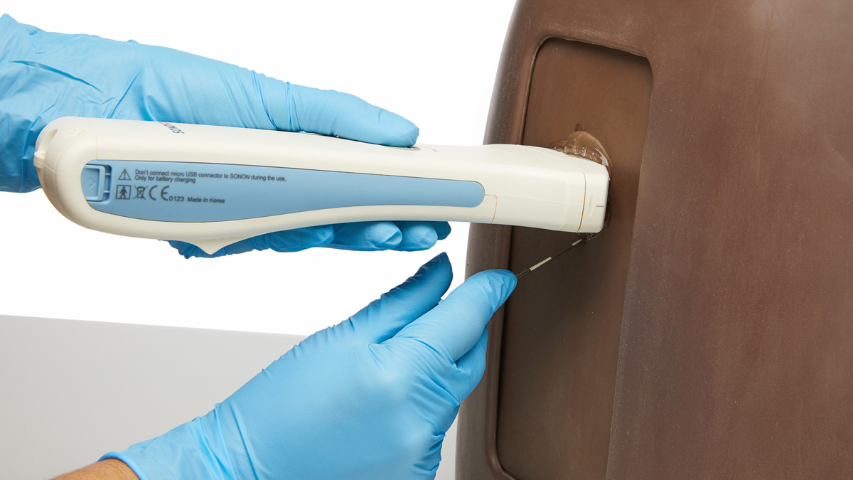 The Limbs & Things echolucent material has been thoroughly tested to ensure its acoustic properties offer an experience as close to human tissue as possible*. and is compatible with most commercial ultrasound machines, including the SONON handheld imaging system.