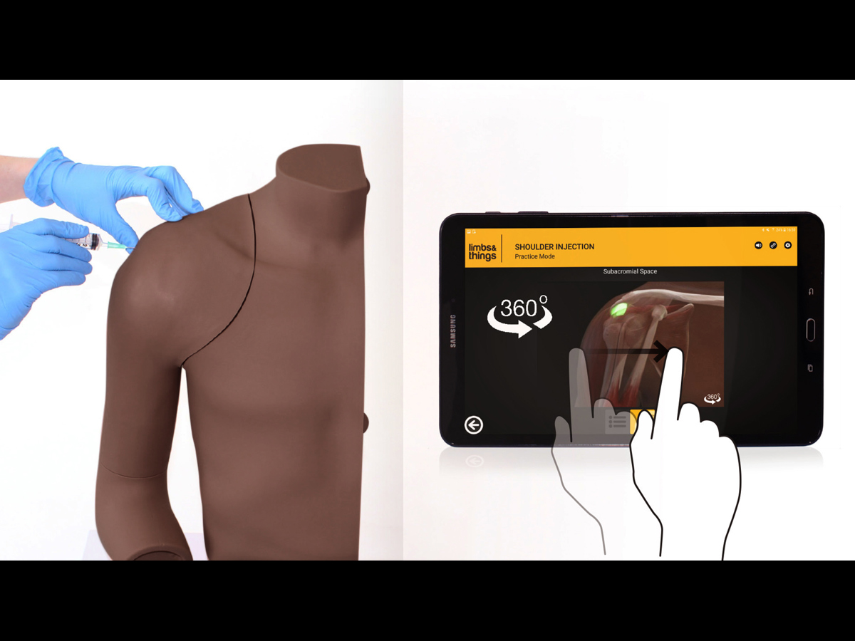 Designad i samarbete med läkare. Modellen och den medföljande appen kombinerar fysisk övning med vägledning av teknik. Modellen utgör en plattform för repiterad träning och inlärning av axelinjektioner på de fyra vanligaste ställena. Den medföljande android-appen möjliggör för användaren att visualisera underliggande anatomi. Den signalerar även framgång. Detta bidrar till ökad precision och inlärningshastighet. Appen länkar till ShoulderDoc som ger information och instruktioner om axelinjektionstekniker.