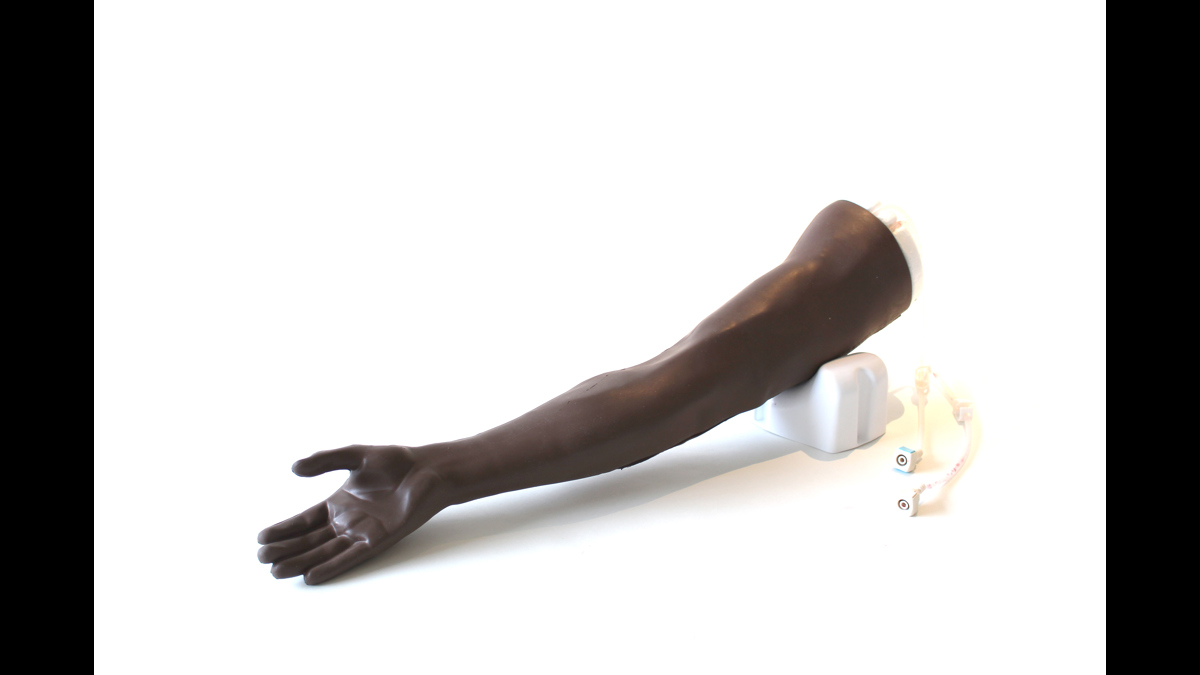 - Use water-based lubricant to fit arm skin over the venipuncture arm base