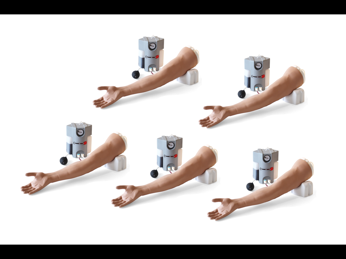 An ideal training bundle for all levels of learning, the Advanced Venipuncture Value Pack includes 5 Advanced Venipuncture Arm Trainers (70300) along with 5 additional ACF Vein Modules (70306) and 5 additional Venipuncture Arm Skins (70312).