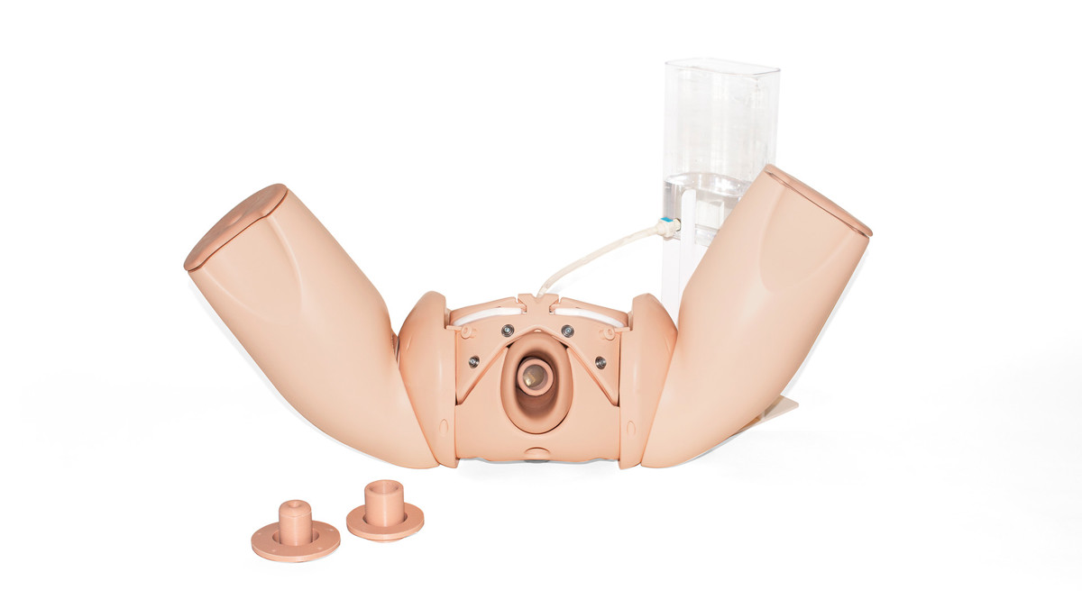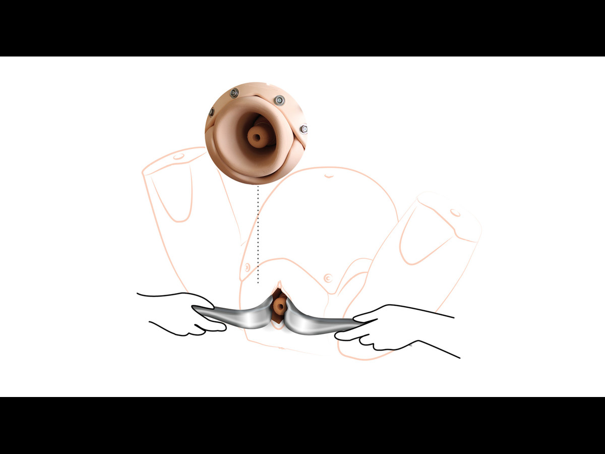 Realistisk återgivning av en vidgande cervix och buktande membran med mjukt särade blygdläppar och korrekt storleksanpassat slidvalv som efterliknar det tillslutna utrymme som finns när ingreppet utförs