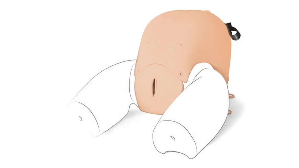 - Abdominal skin has realistic appearance, fat layer and feel of at-term abdomen