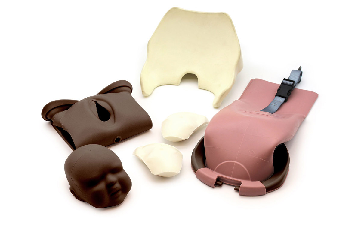 The AVB Uterus, when used in conjunction with the Foam Inserts and Uterus supports, provides realistic resistance to the user when delivering the PROMPT Baby.