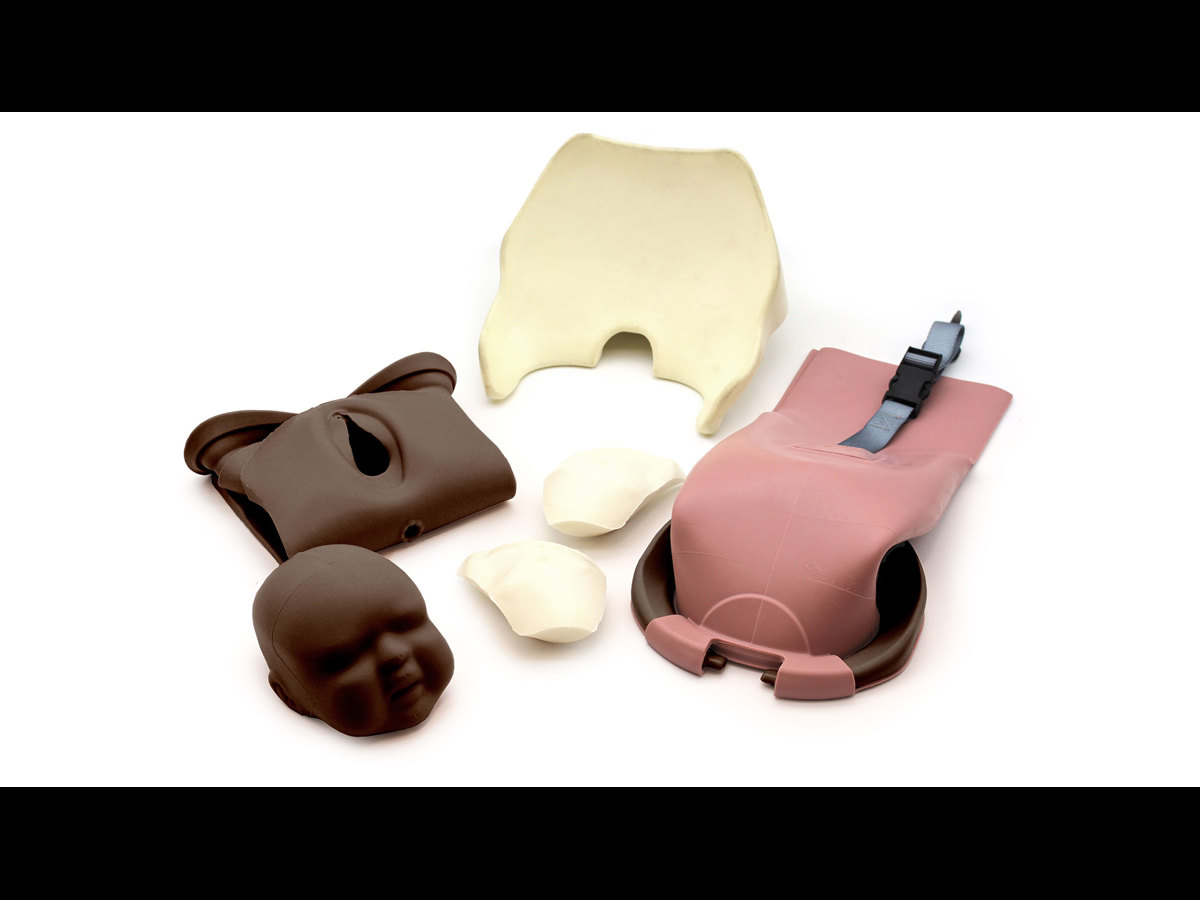 Combined with the PROMPT Flex trainer and Baby Module, it represents the female body at birth (abdomen to knee) and a full term baby.