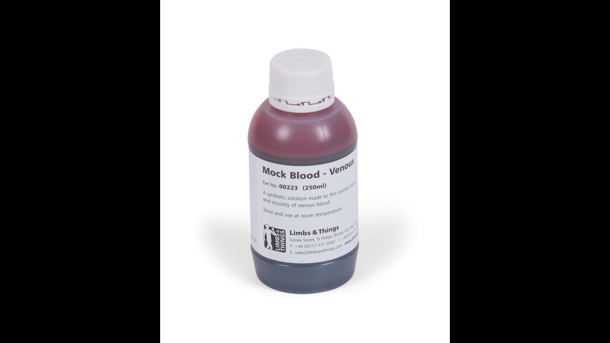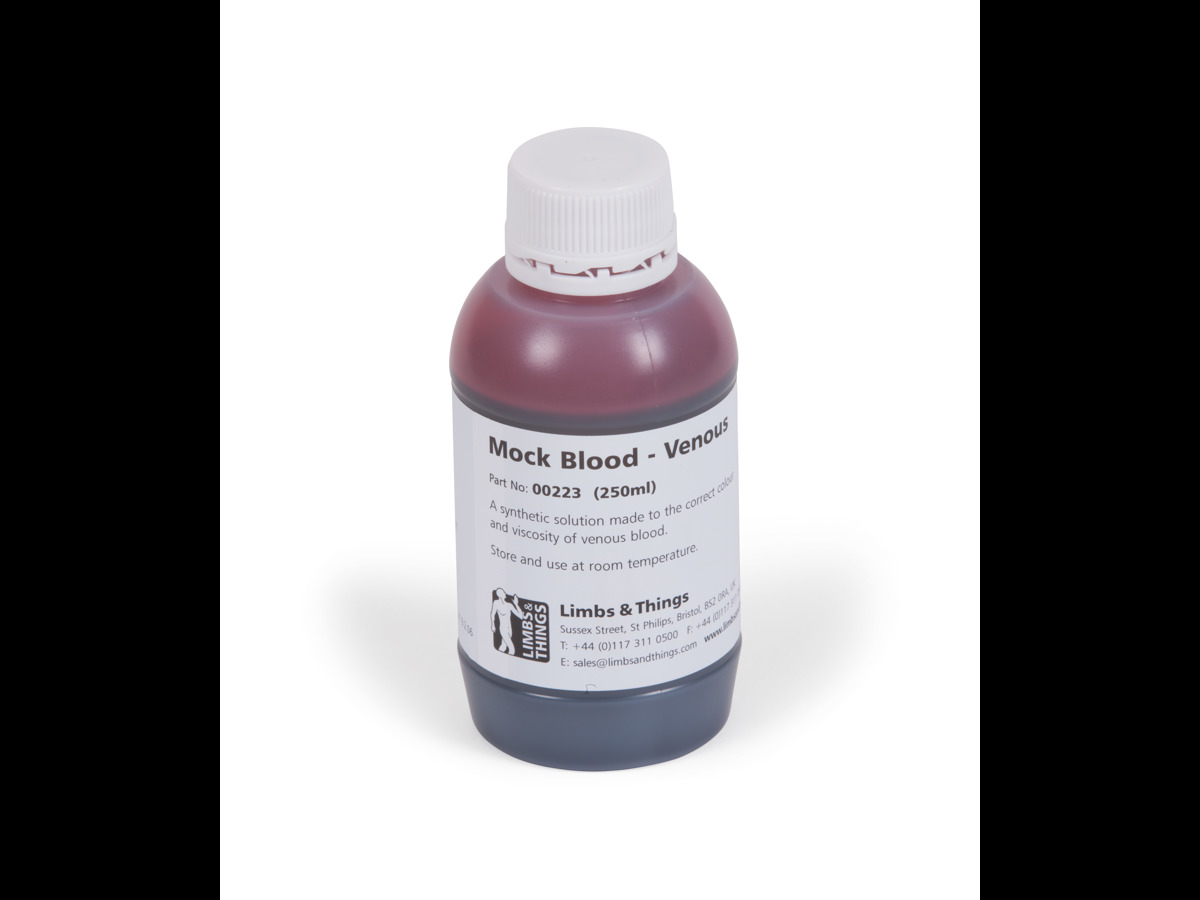 250 ml syntetisk lösning gjord i samma färg och konsistens som venöst blod.