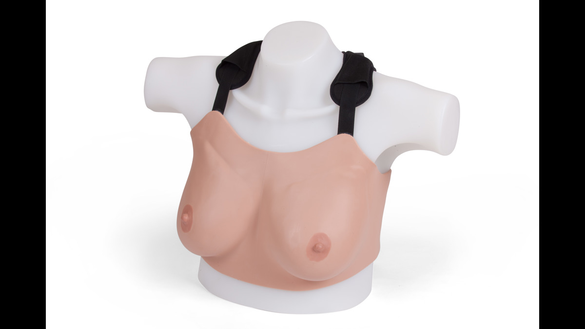 - Wearable breast component can be used with a simulated patient, strap fastenings can be adjusted to the wearer