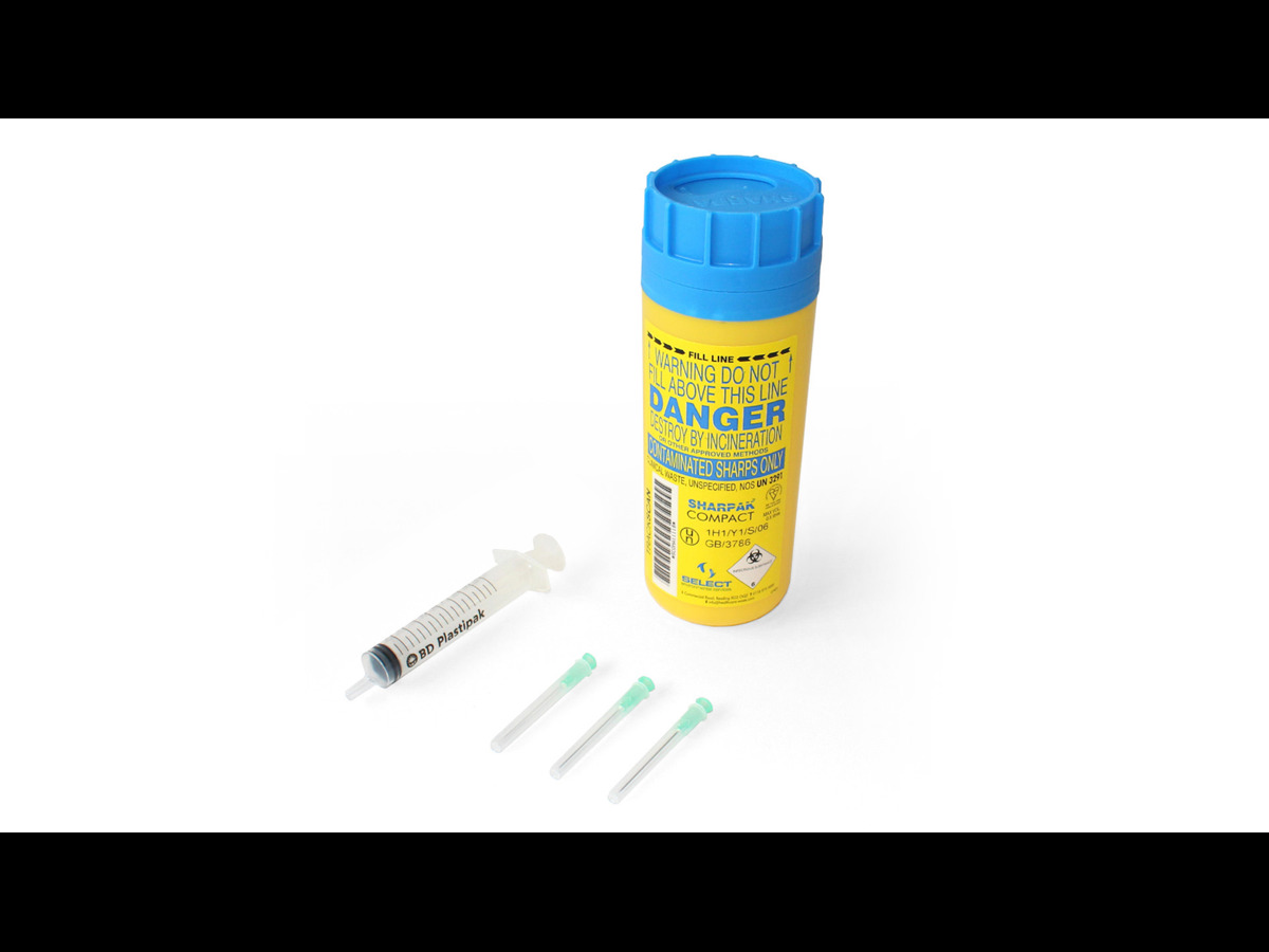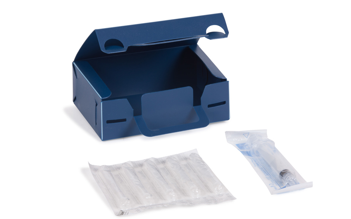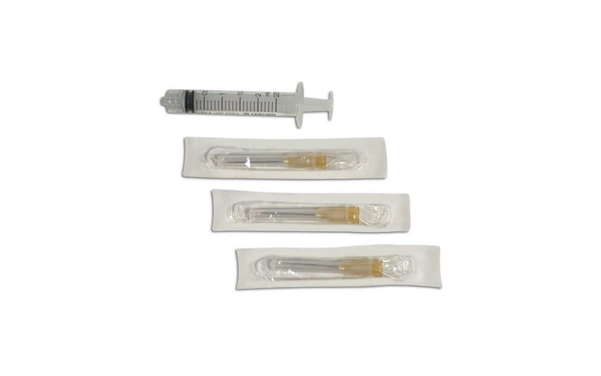 Ett set med 3 gröna nålar (21 gauge), 1 spruta och 1 behållare för vassa föremål. För användning med Knä för aspiration och injektion med ultraljud (AAALT70103) samt Axelinjektioner - Palpationsguidad (AAALT70200).
