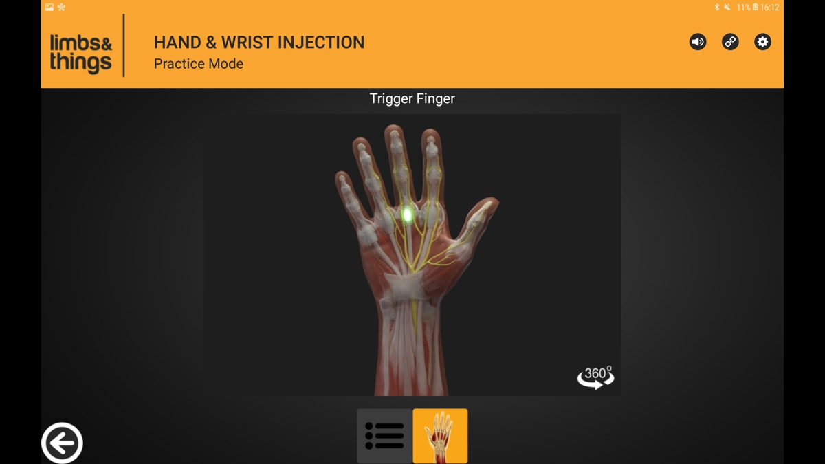 The trainer comes equipped with an Android tablet, which works in unison with our app. The app, coupled with innovative sensory technology, provides learners with wireless, real-time feedback from the procedure. An Interactive Anatomy element allows users to rotate the detailed model anatomy 360 degrees so each injection site can be viewed and analysed from a number of angles.