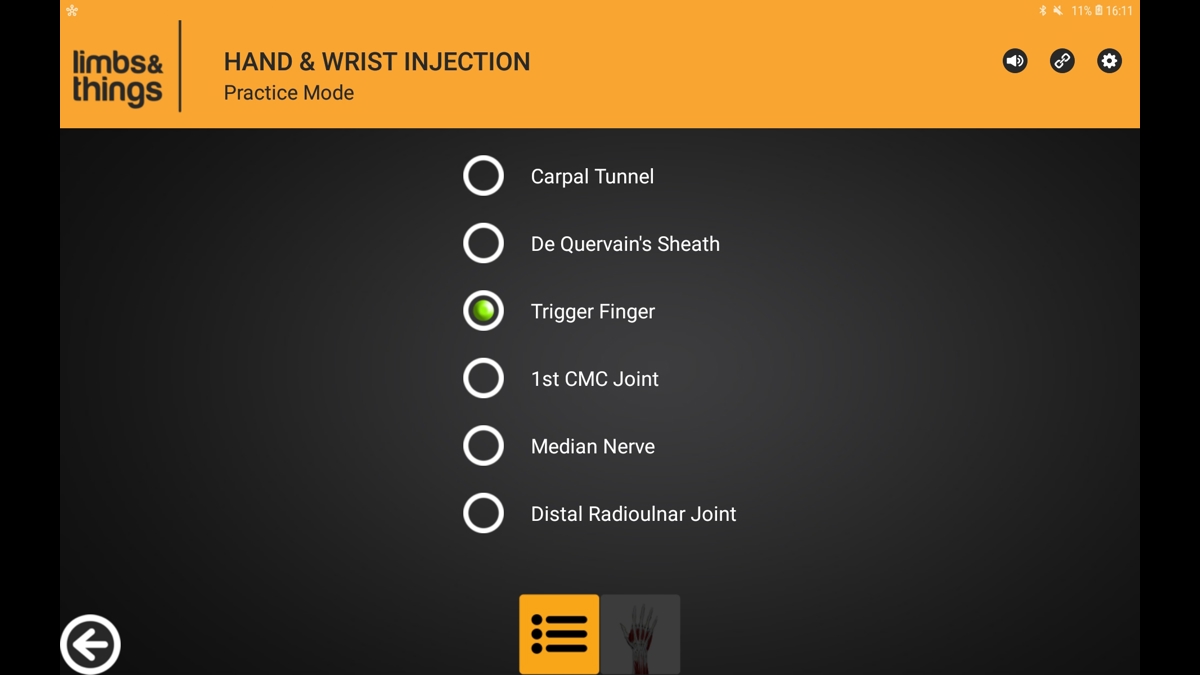 Yes, the hand & wrist simulator has an accompanying app which allows trainees to receive instant positive & negative feedback from the model depending on whether the correct injection site is hit.