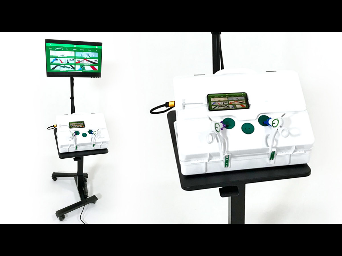 - 5 laparoscopic instruments - needle holder, ratcheted grasper, non-ratcheted grasper, scissors and knot pusher