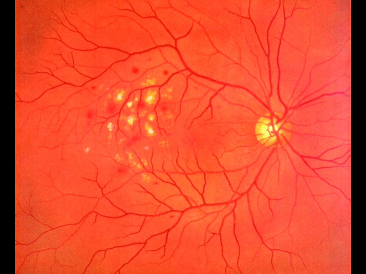 - Proliferativ/bakgrund diabetisk näthinnesjukdom: mikroaneurysm, blödningar och hårda exsudat