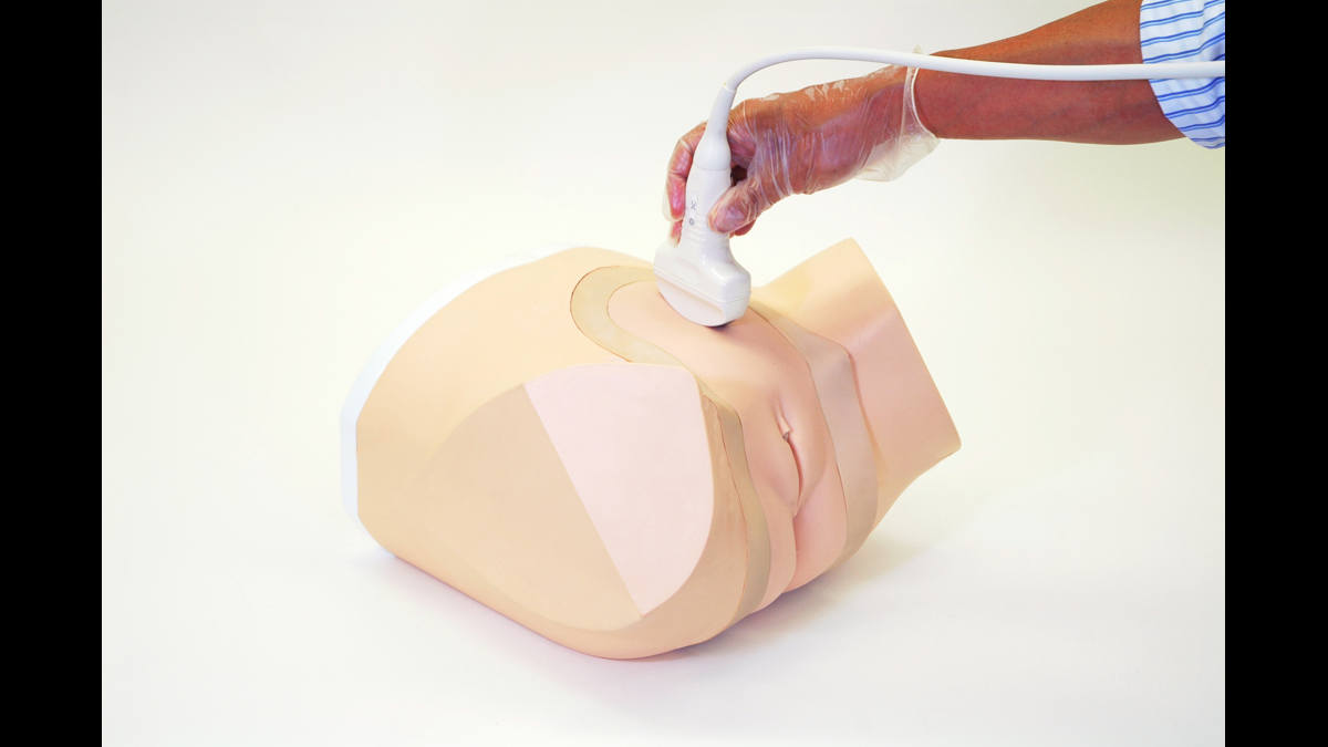 En modell för övning av transvaginal och transabdominal ultraljudsundersökning samt identifiering av en rad olika sjukdomar.