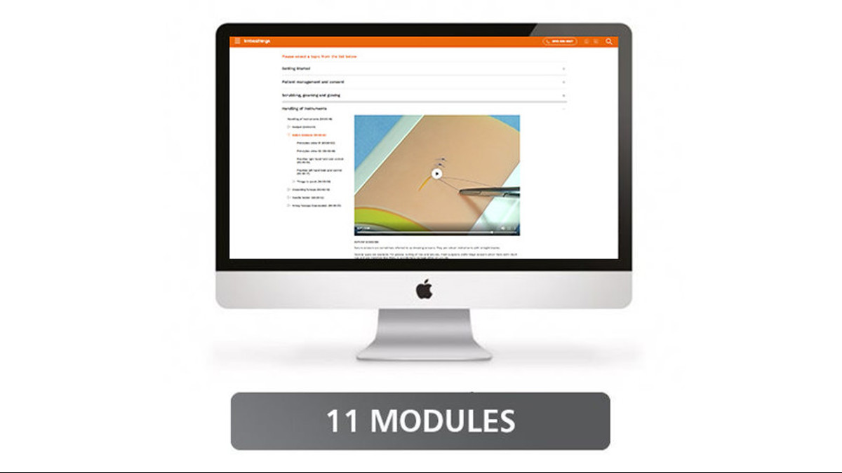 En onlinekurs i 11 delar för praktisk träning av grundläggande instrumenthantering, suturknutar och en mängd olika suturtekniker.