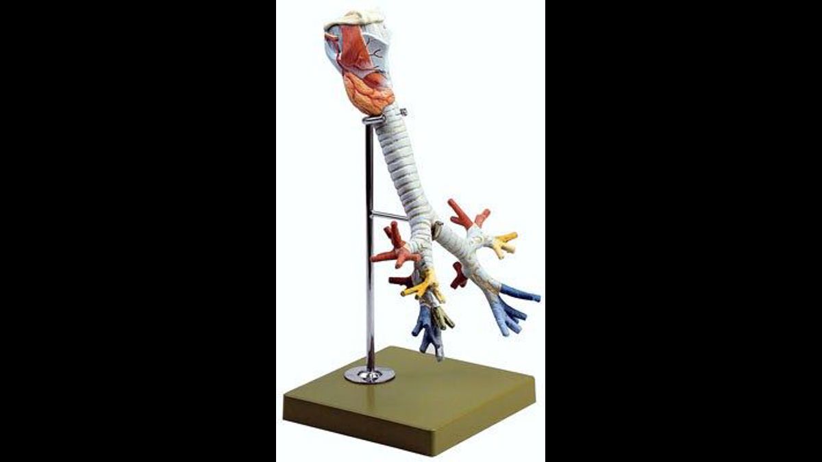 Naturlig storlek, tillverkad i SOMSO-Plast. Vänstra halvan av struphuvudet kan tas bort. Består av två delar.