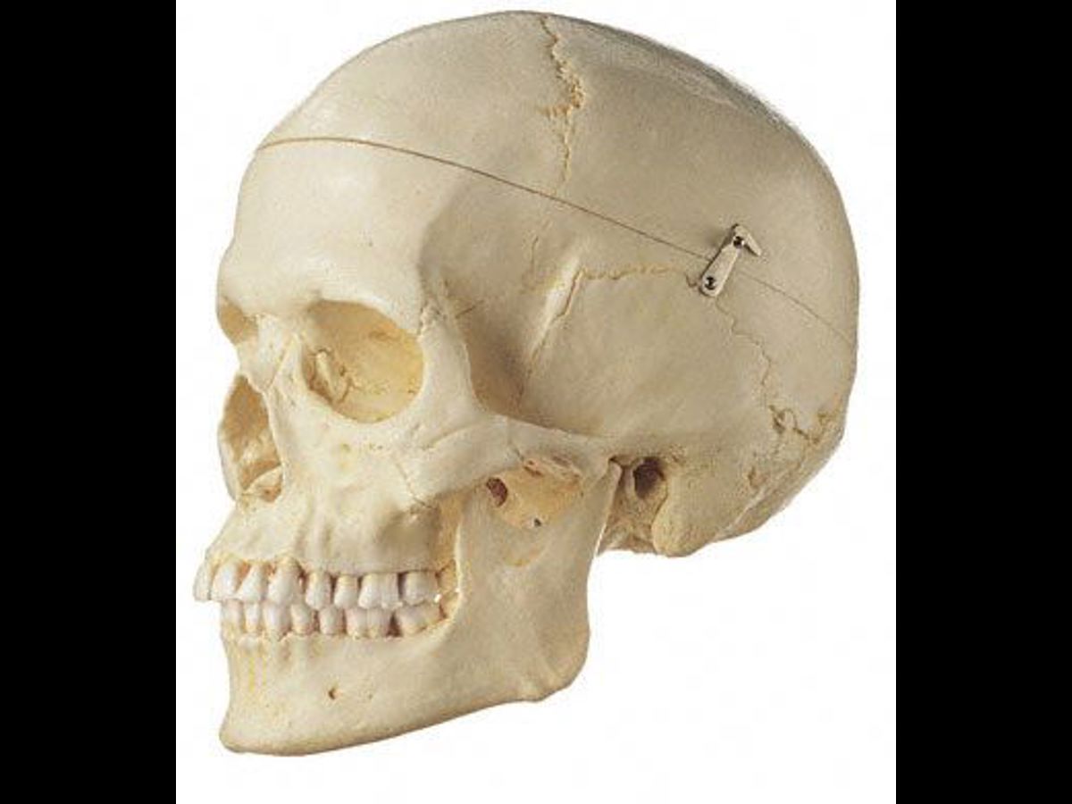 Naturlig gjutning. Nedre käkdelen är rörlig. Verklighetstrogen reproduktion av benstruktur. Kan tas isär i 3 delar.