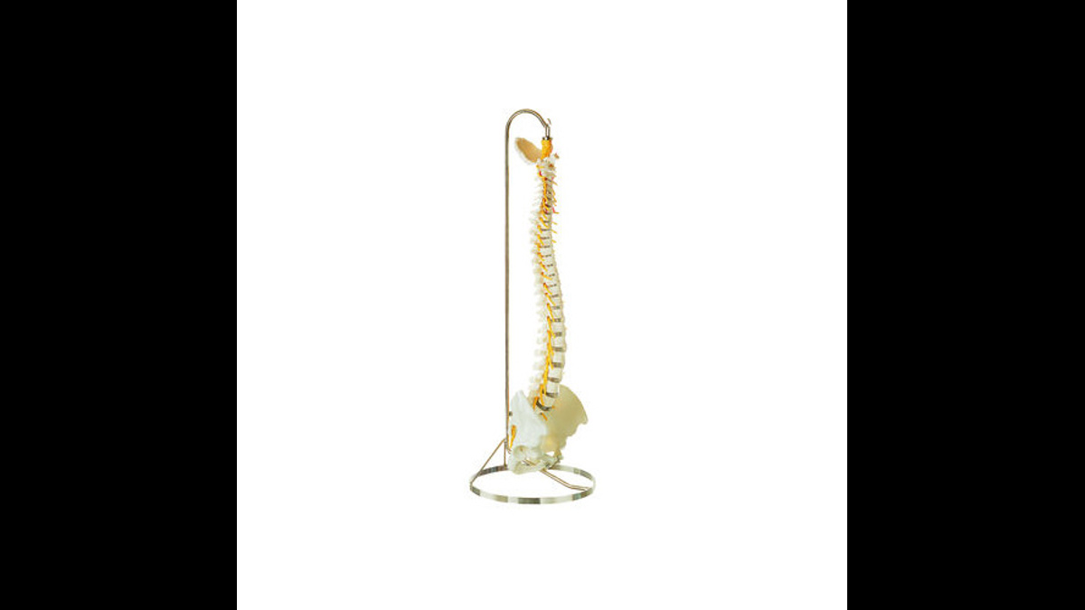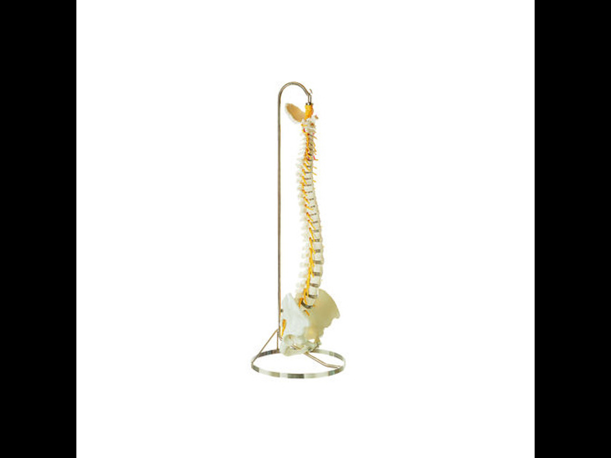 Gjutet från naturligt exemplar. Monterad och flexibel, visar kotartären, ryggmärgen, ryggradsnerver och de sammanlänkade gangliecellerna. Lämplig för demonstration av hälsosam och patologisk krökning av ryggraden. Med en ställning för upphängning.