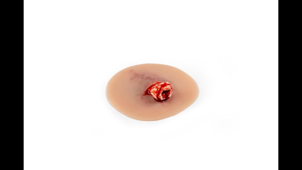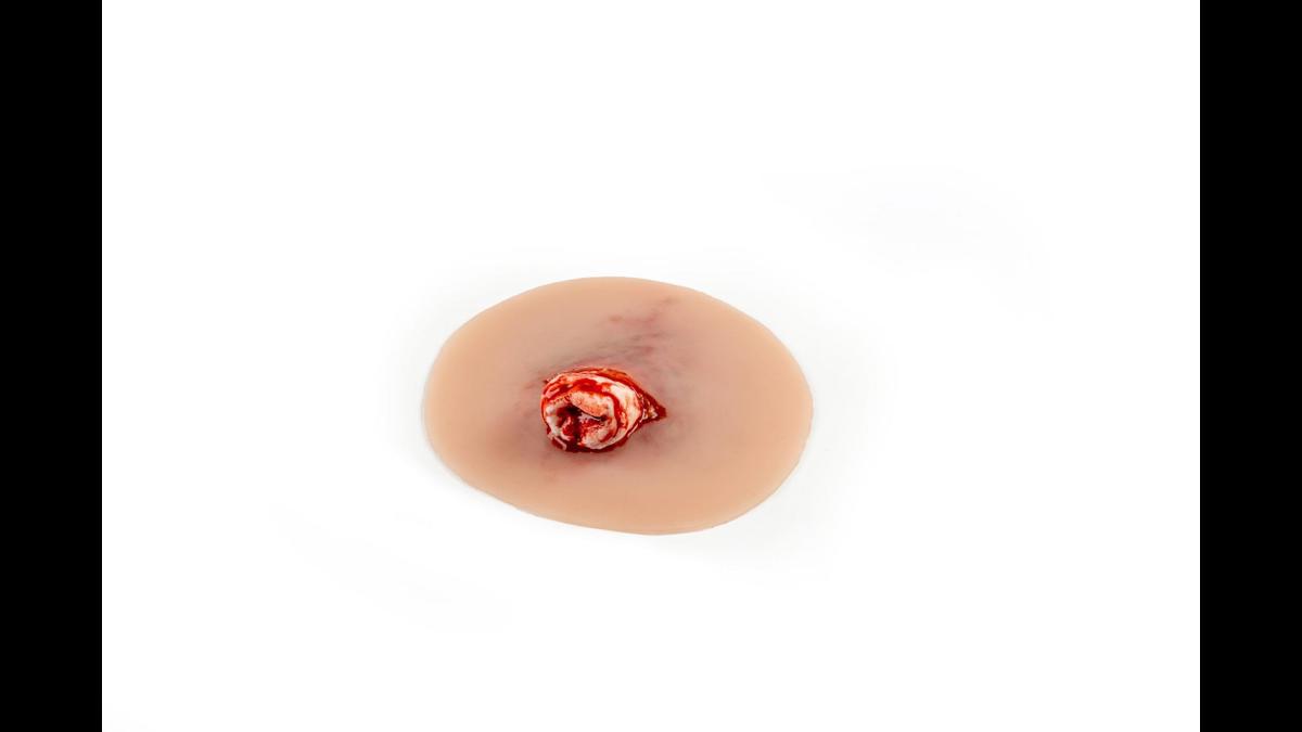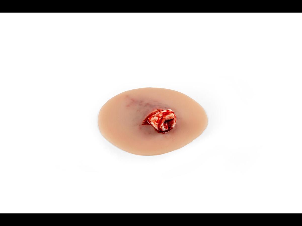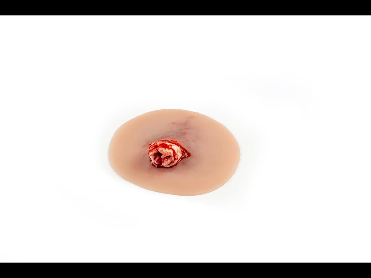 Wound presentation “Open fracture ankle joint” är ett detaljerat silikonmoulage designat för traumaträning vid fotledsfrakturer. Den yttre delen är gjord av mjuk silikon för realistisk känsla mot hud och vävnad, medan det exponerade benfragmentet är tillverkat av hårdare silikon för att tydligt efterlikna benstruktur utan att riskera skada under övning. Moulagen är självhäftande och kan fästa direkt på både manikiner och människohud (standardiserade patienter). För längre träningspass eller vid behov av starkare fäste kan ett särskilt moulage‑lim användas; tänk dock på att limmet permanent förstör den självhäftande ytan. Ett praktiskt och hållbart hjälpmedel för realistiska akutscenarier inom akutsjukvård, prehospital träning och medicinska utbildningar.