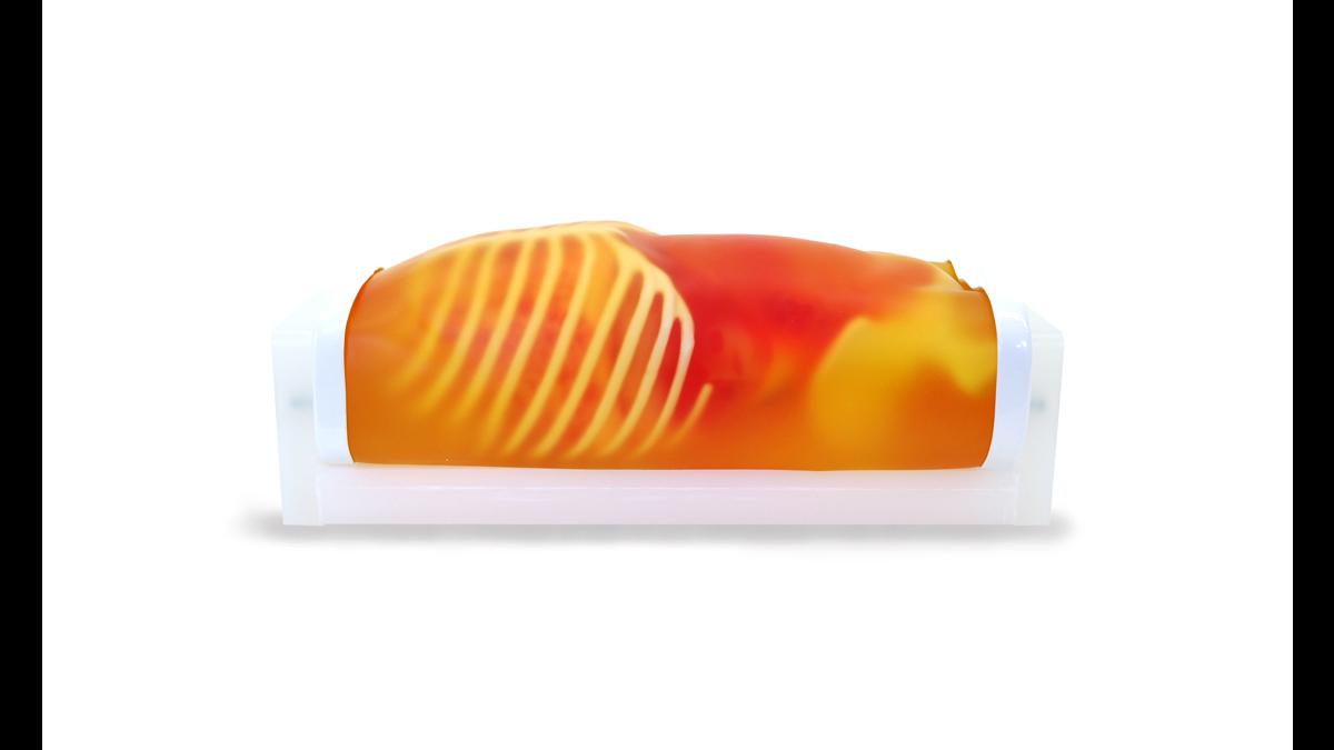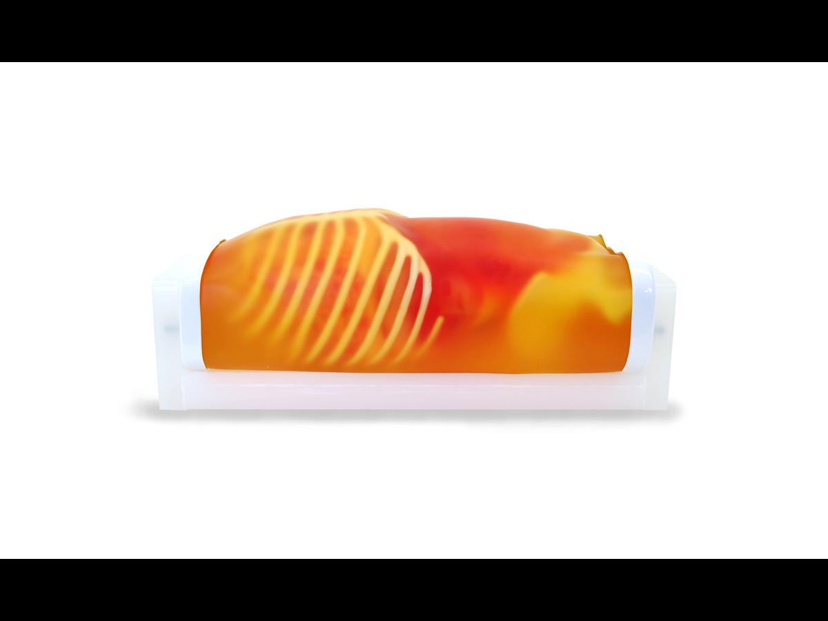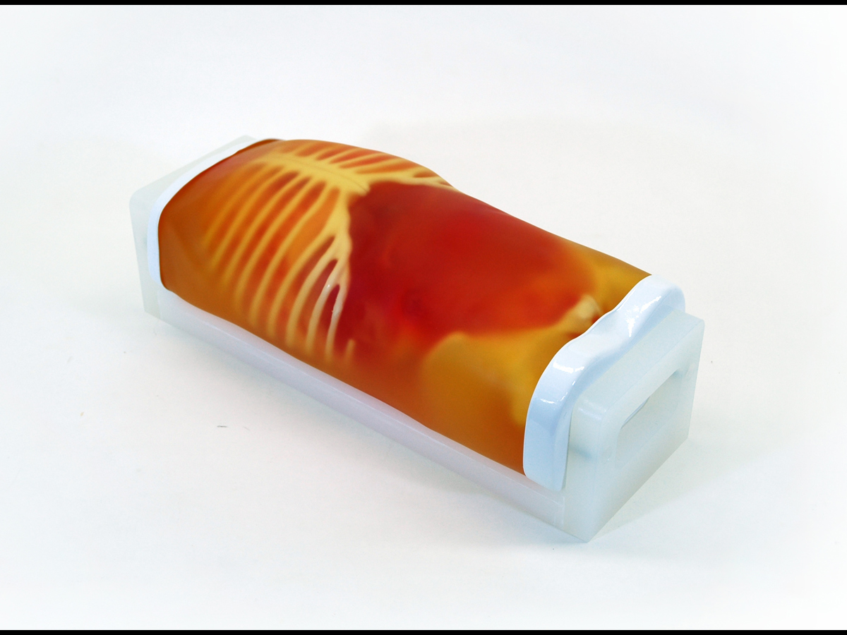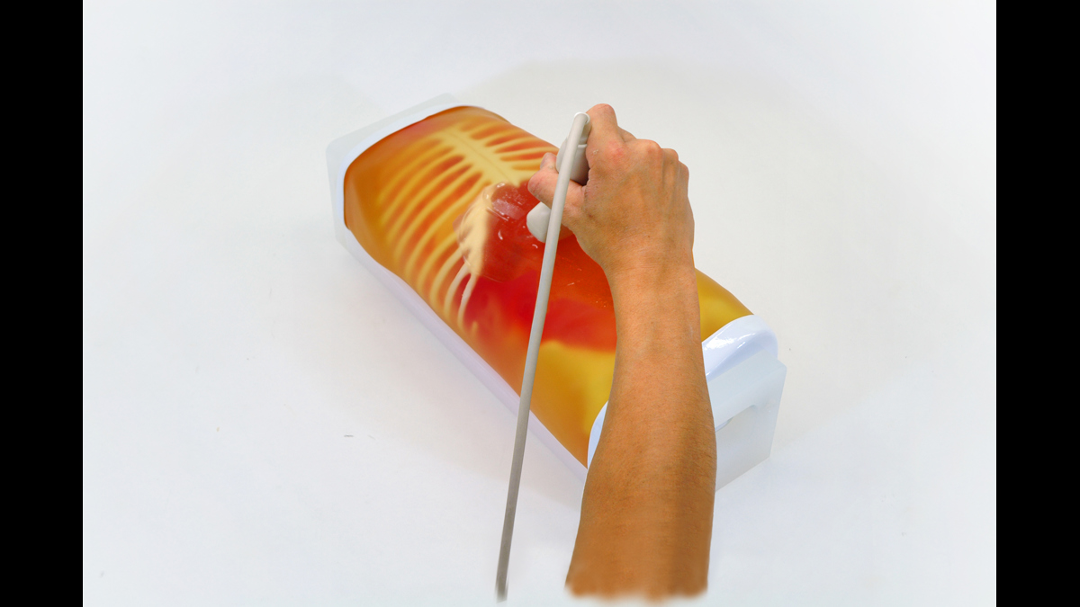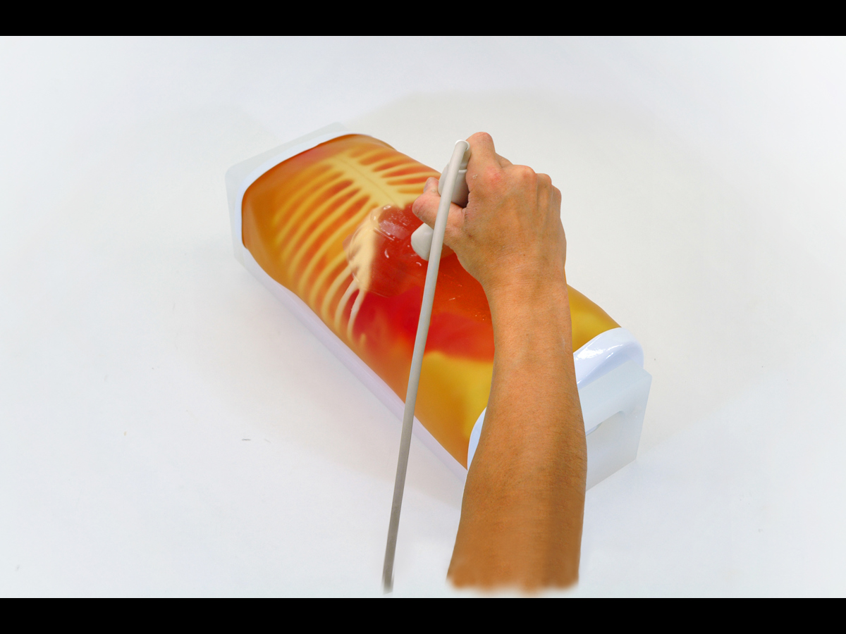 With this phantom, which represents the torso of a 2-year-old patient, trainees are able to acquire basic paediatric abdominal ultrasound skills, as well as FAST/acute sonography techniques.