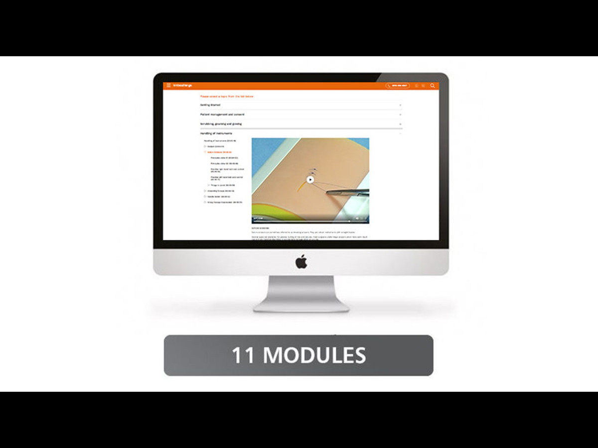 En onlinekurs i 11 delar för praktisk träning av grundläggande instrumenthantering, suturknutar och en mängd olika suturtekniker.