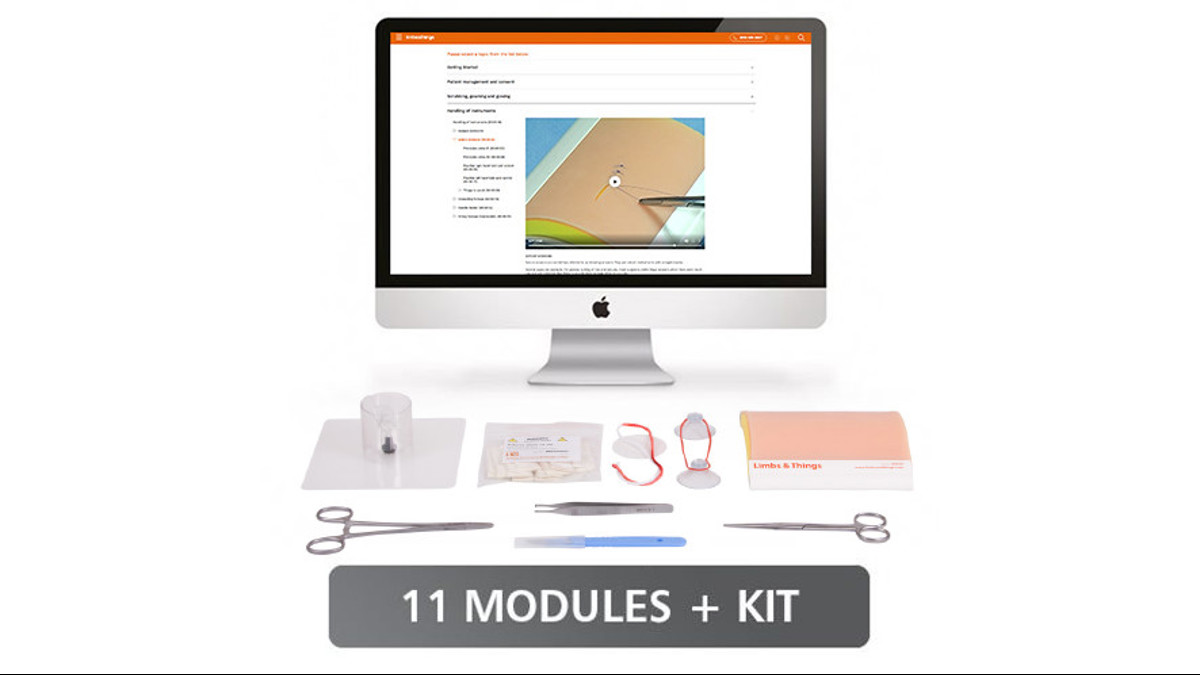 A hands-on kit and online course teaching basic instrument handling, knot tying, a wide variety of suturing techniques and much more.