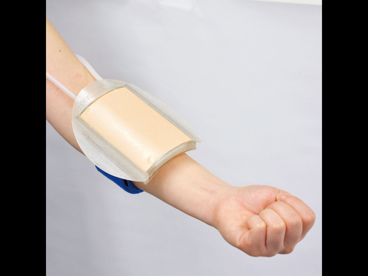 MW50 Strap-on venpunktionstränare är en flexibel och bärbar träningslösning för undervisning i venpunktion och intravenös injektion. Träningsdynorna är tillverkade i slitstarkt, realistiskt material som efterliknar hudens och vävnadens känsla vid nålinsättning. Systemet kan fästas direkt på en simulerad patient (SP) eller på en träningsdocka, vilket möjliggör träning på flera olika anatomiska insticksställen. Detta ger en realistisk och mångsidig träningsmiljö för utveckling av kliniska färdigheter inom blodprovstagning och IV-behandling. Levereras som ett komplett set med hållare, fästband, vätskebehållare och förvaringsväska.