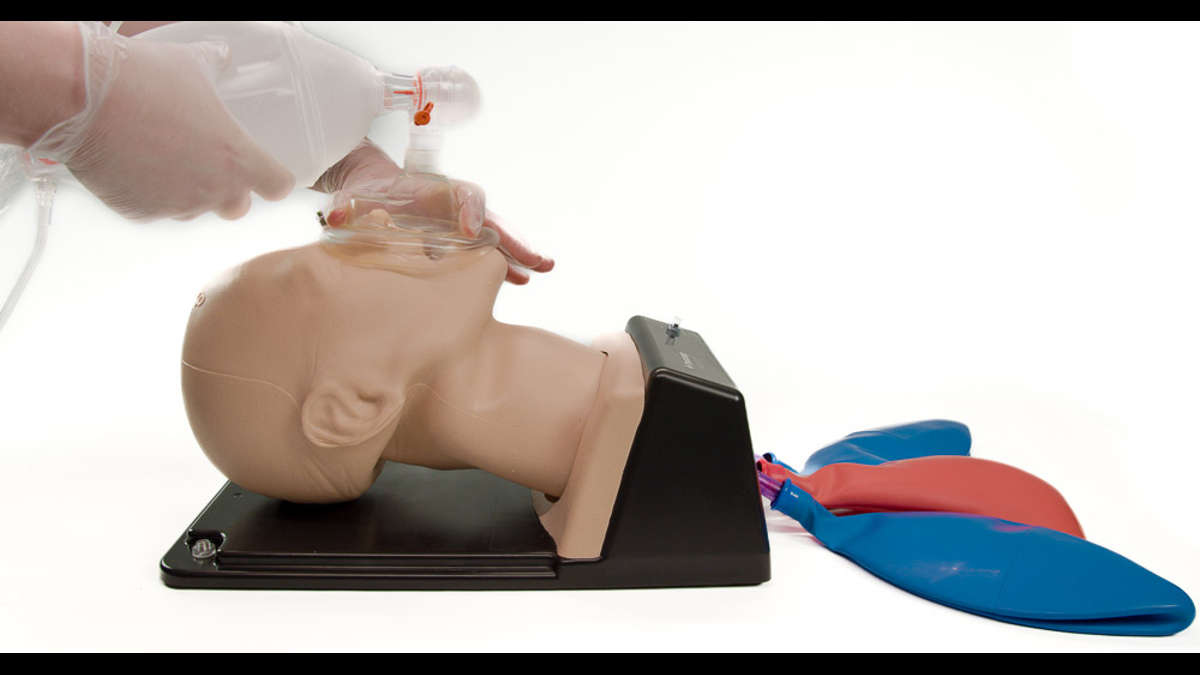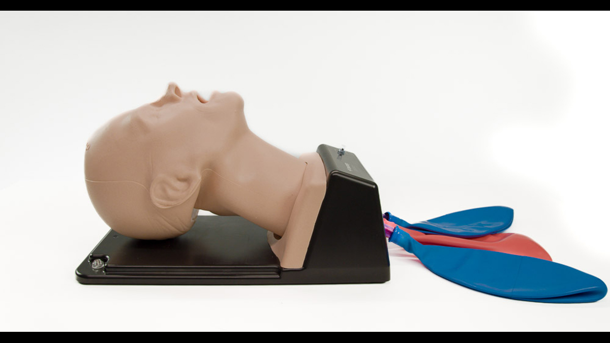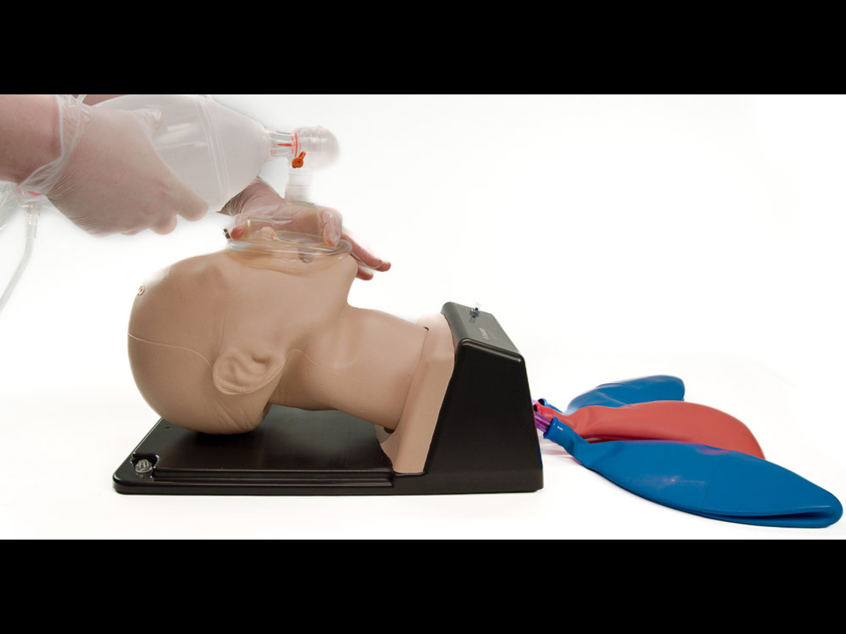 - Larynx and trachea leading to two lung bags – inflates in response to correct intubation