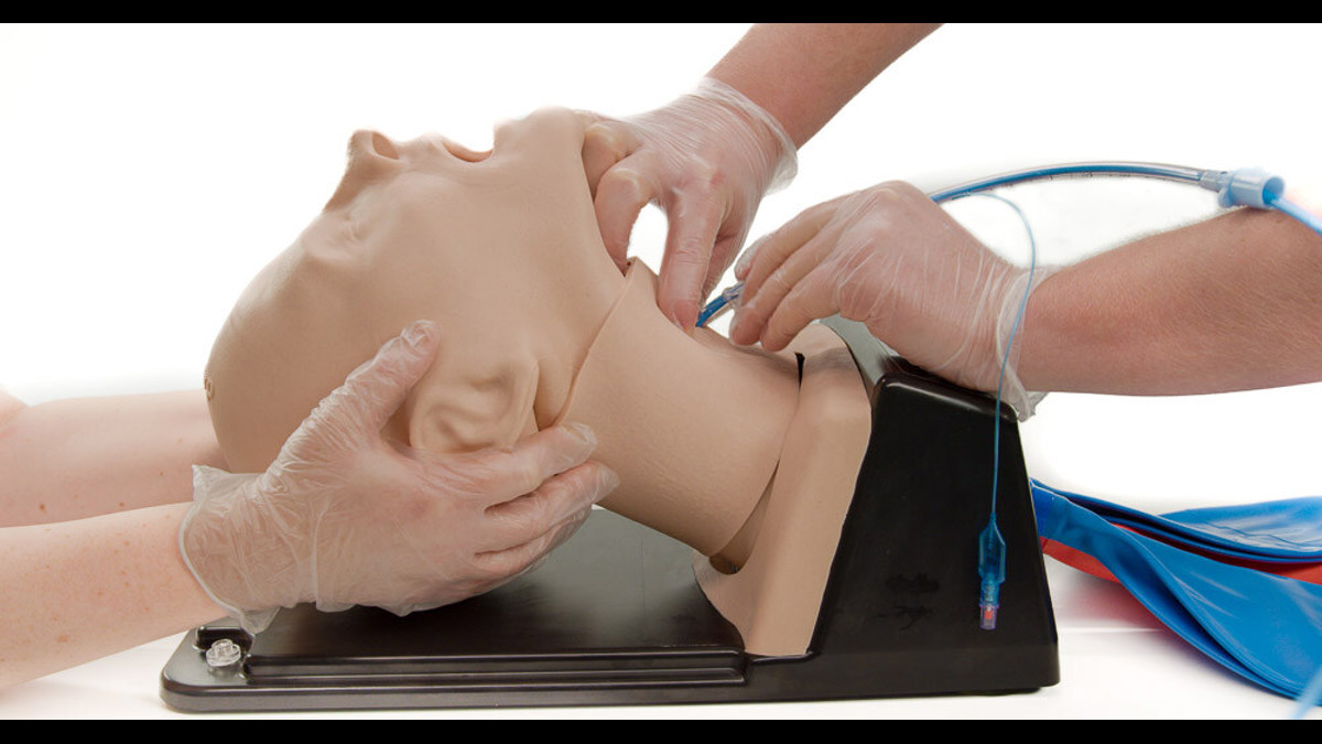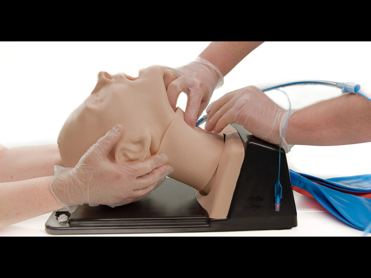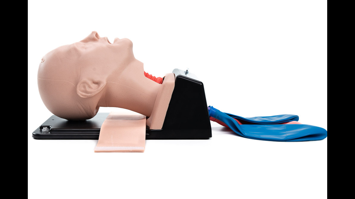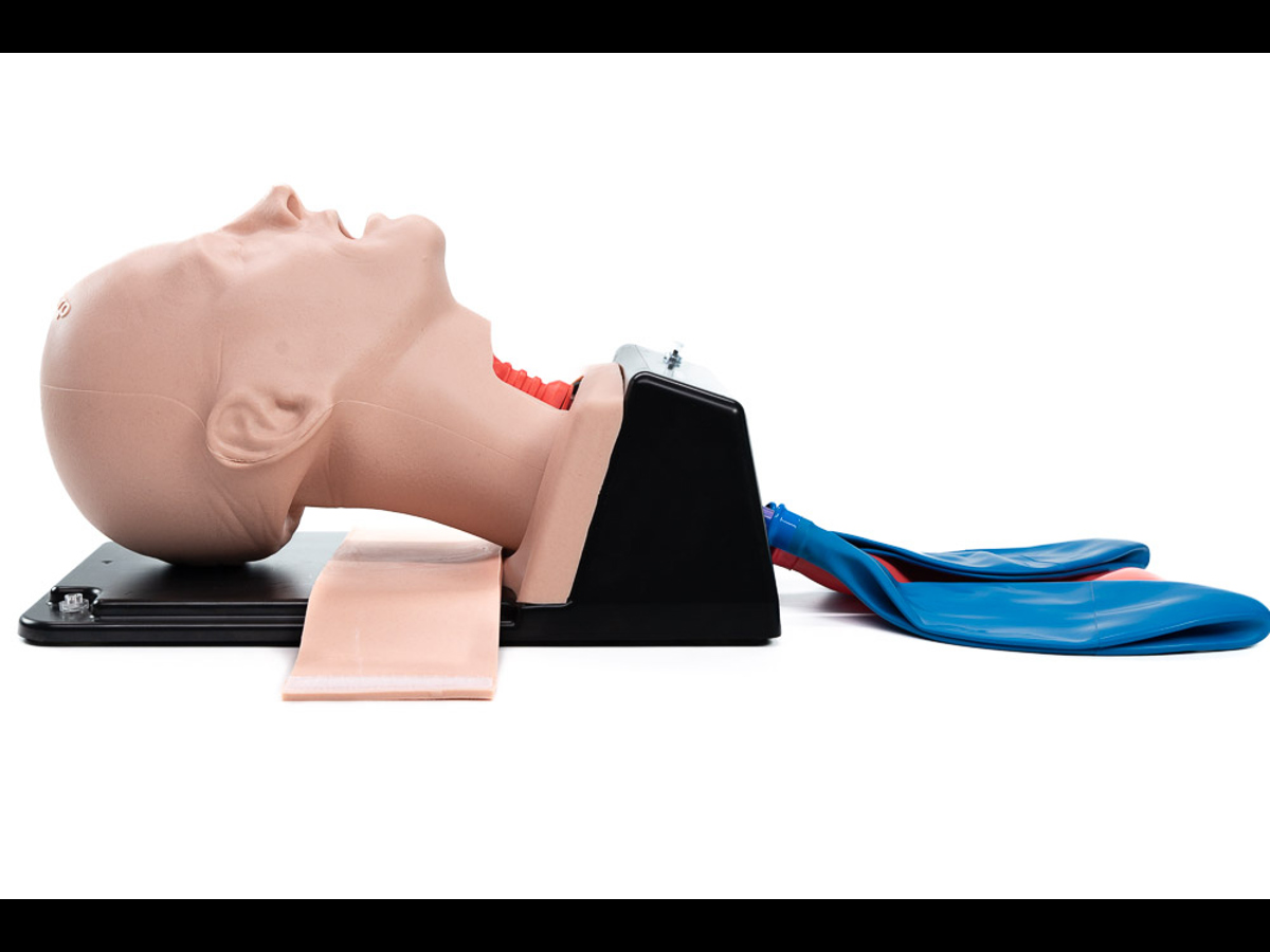 - Realistiska drag såsom: kännbara broskringar, krikoidalbrosk och larynxbrosk för att underlätta identifiering av halsgropen