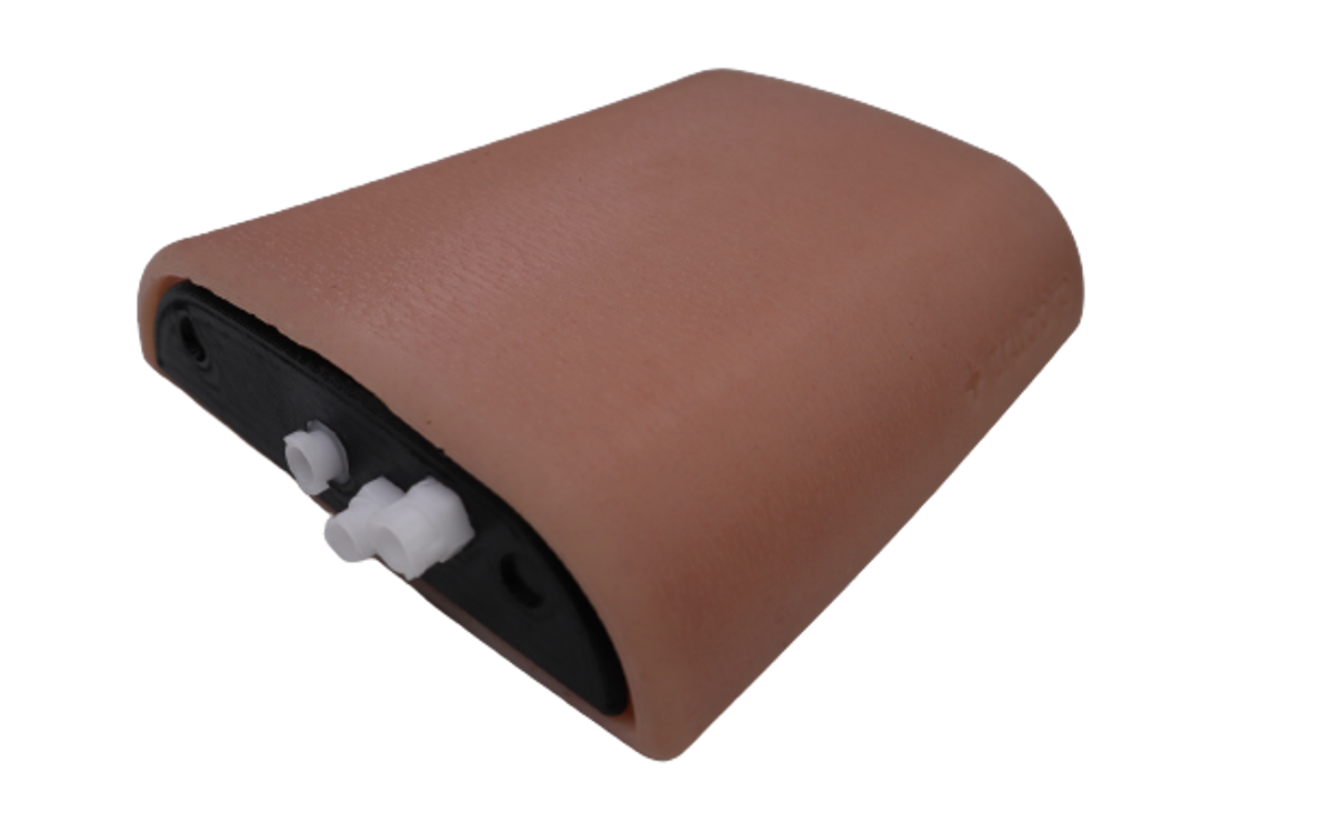 To perform IV procedures, you will need to prepare approximately 200ml of mock blood, and fill the reservoir in the black base via the “blood in” input. Once filled, attach the block to the power and turn on the trainer, within a few minutes, the block will fill with blood and be ready to use.