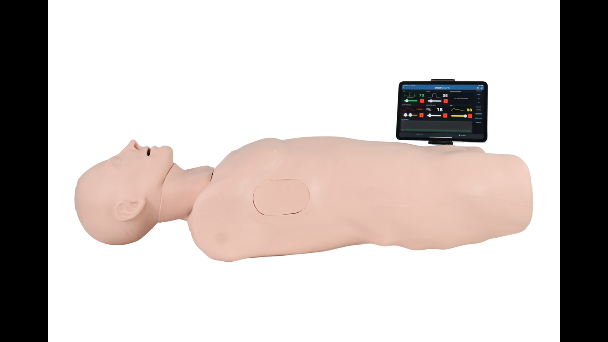 Anatomically accurate, Smart TruMan Trauma Adult supports training in advanced interventions such as chest drain, CPR, airway management, pneumothorax decompression and cricothyroidotomy. Enhanced CPR feedback is available with the SmartResus app for real-time patient assessment and monitoring.