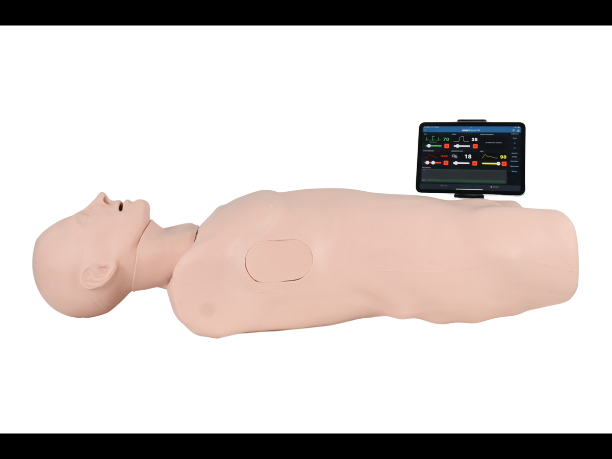 - Accurate representation of chest rise and fall during ventilation, and compression depth and recoil during CPR